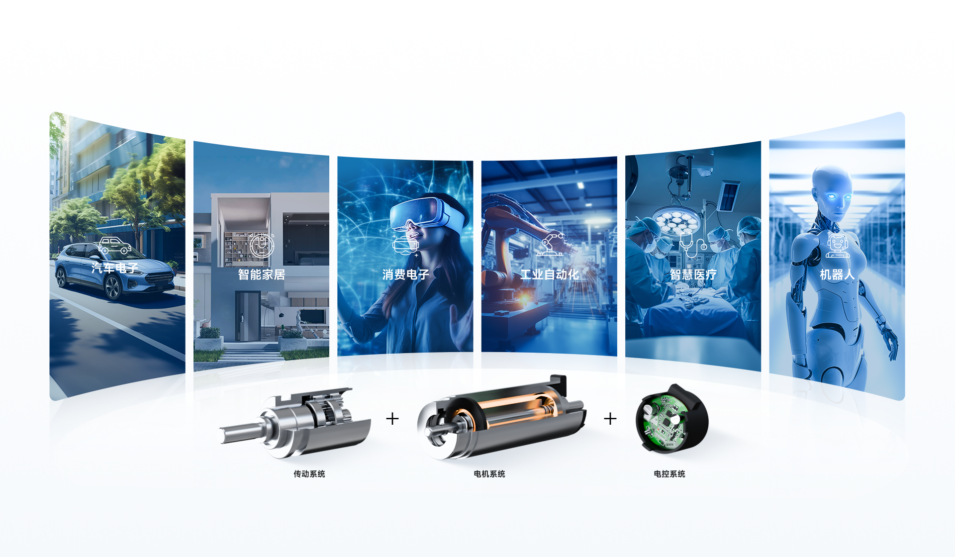 我們提供包括傳動系統+電機系統+電控系統在內的各類產品, 覆蓋汽車電子、智能家居、消費電子、工業自動化、智慧醫療、機器人等多種領域,產品陣容豐富。